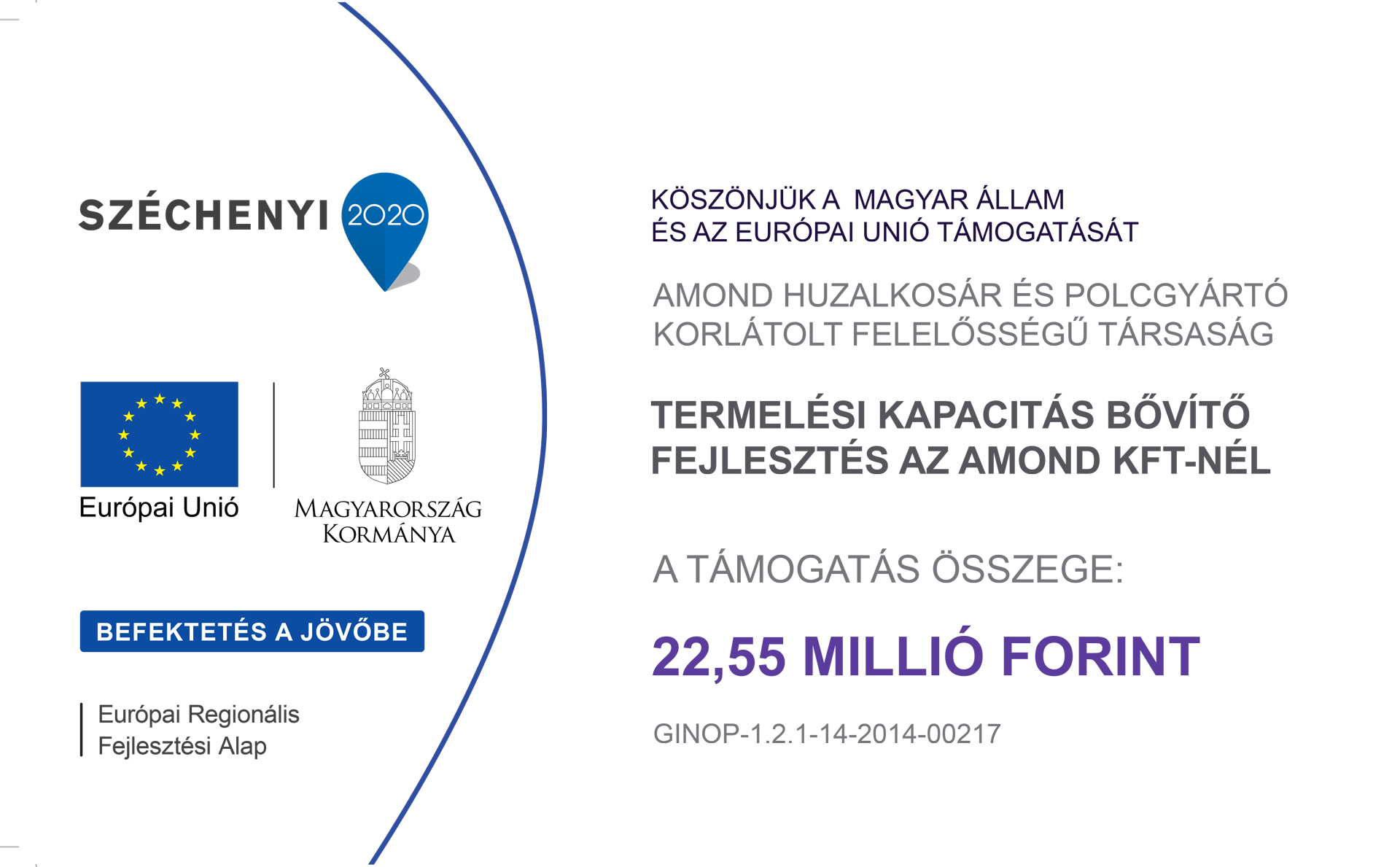 A TÁMOGATÁS ÖSSZEGE: 22,55 MILLIÓ FORINT (GINOP-1.2.1-14-2014-00217)